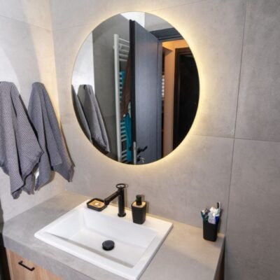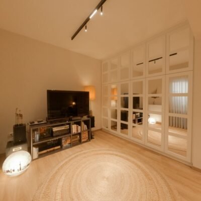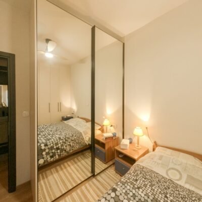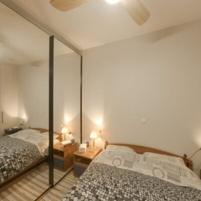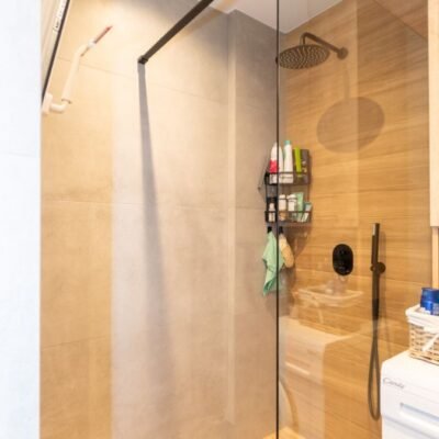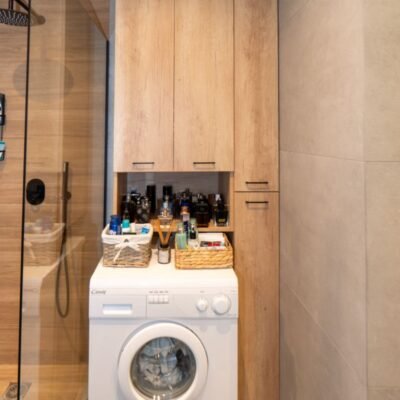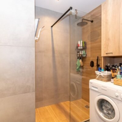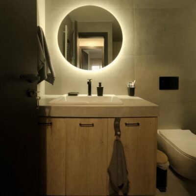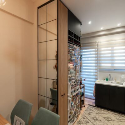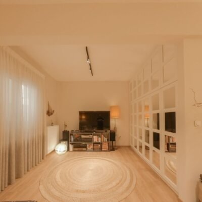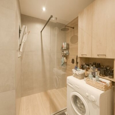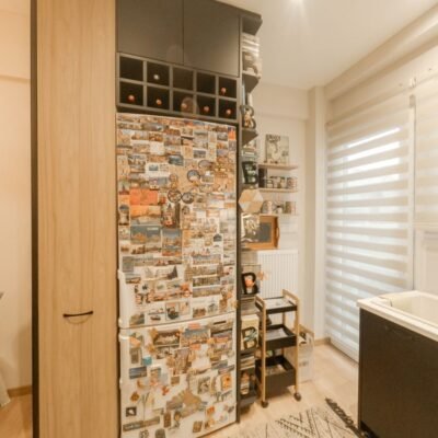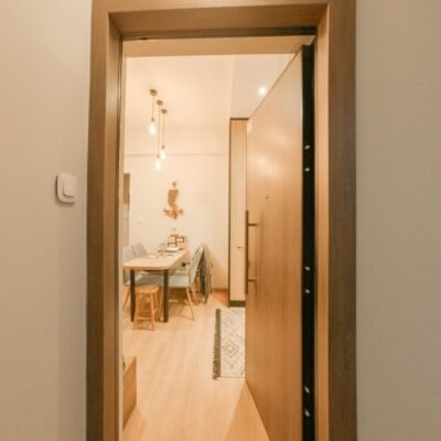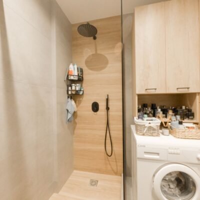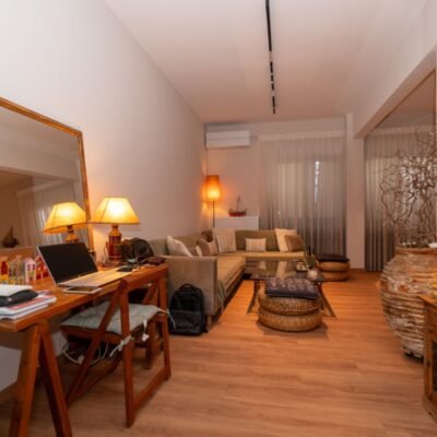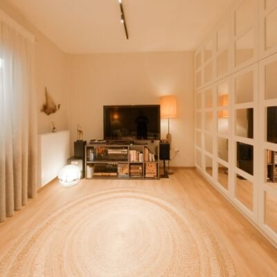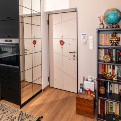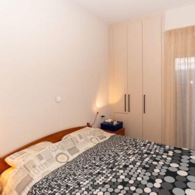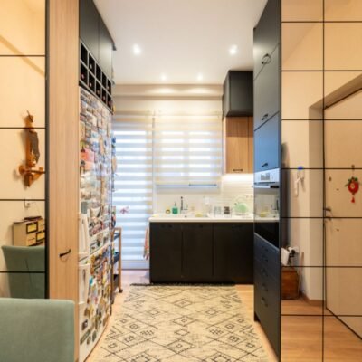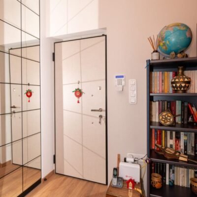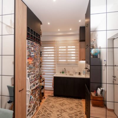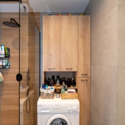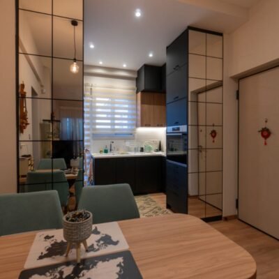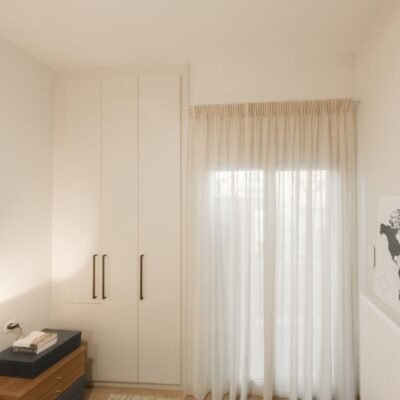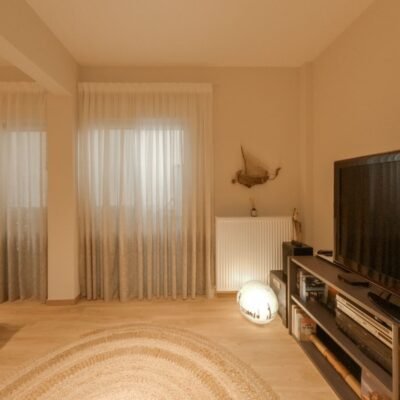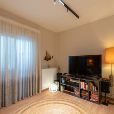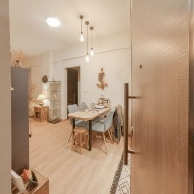 Με αυτόν τον τρόπο το διαμέρισμα αναβαθμίστηκε ενεργειακά και αυτό φάνηκε και στην πράξη σε μεγάλο βαθμό. Οι εσωτερικές πόρτες αντικαταστάθηκαν με νέες πόρτες Laminate και οι ντουλάπες έγιναν συρόμενες και λεπτομέρειες από καθρέπτες. Το μπάνιο μεταμορφώθηκε σε ένα πολύ λειτουργικό μπάνιο με πλακάκια σε γήινες αποχρώσεις. Η εξωτερική πόρτα εισόδου αντικαταστάθηκε με μία θωρακισμένη πόρτα και το διαμέρισμα χρωματίστηκε σε αποχρώσεις που δένουν με το υπόλοιπο σύνολο.