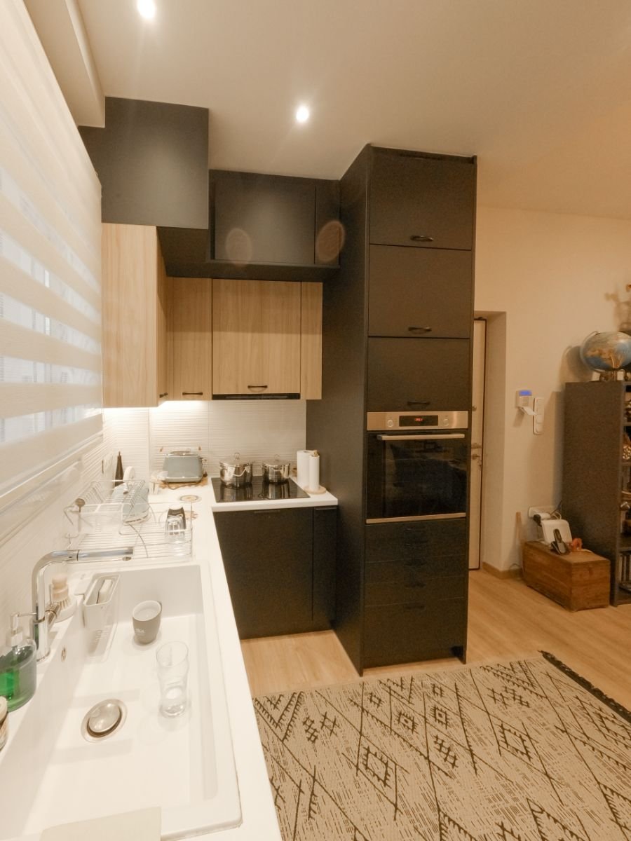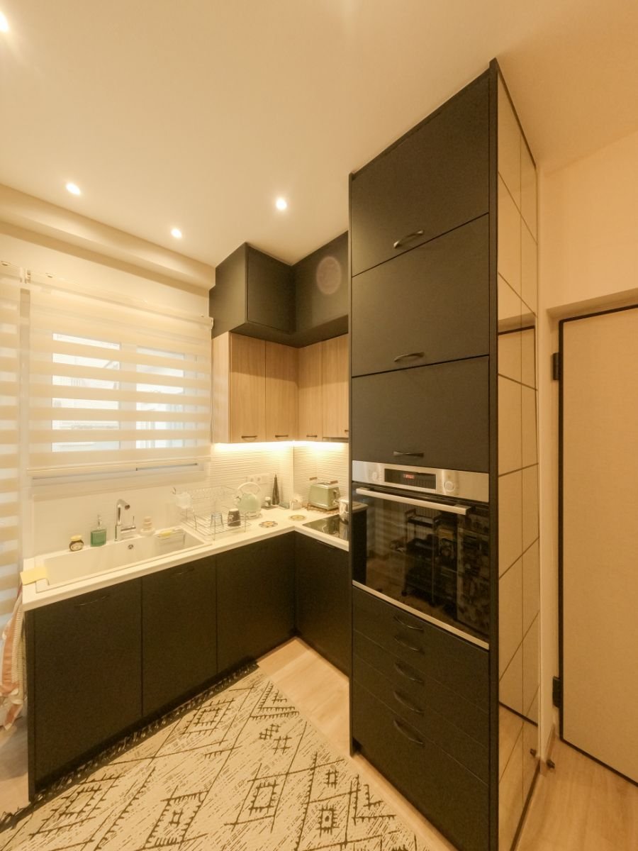 Τέλος η κουζίνα ενώ ήταν αρκετά μικρή, μετά την ανακαίνιση της έγινε απόλυτα λειτουργική. Η συγκεκριμένη ανακαίνιση είχε αρκετές δυσκολίες αλλά το αποτέλεσμα μας δικαίωσε όπως φαίνεται από τις φωτογραφίες.