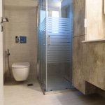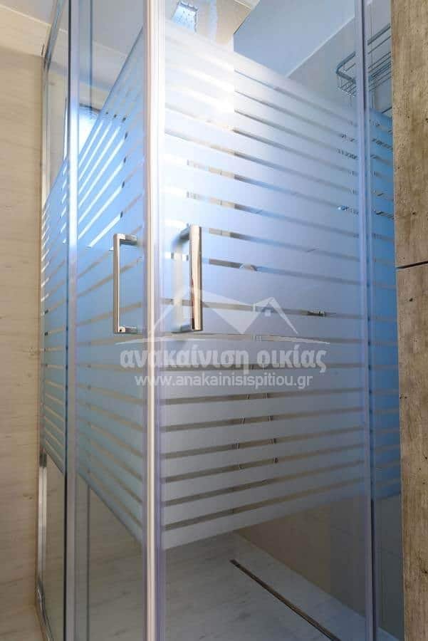 Το διαμέρισμα απέκτησε δύο μπάνια στο ένα από τα οποία τοποθετήθηκε χτιστός πάγκος με επιτραπέζιο νιπτήρα και ντουλάπι από κάτω. Και στα δύο μπάνια η λεκάνη είναι κρεμαστή και το καζανάκι εντοιχισμένο της εταιρείας Geberit . Τα δύο μπάνια εξοπλίστηκαν με χτιστή ντουζιέρα που περικλείεται από καμπίνα με τζάμι ασφαλείας. Η ανακαίνιση μπάνιου ολοκληρώθηκε με την τοποθέτηση πλακιδίων σε όμορφες γήινες αποχρώσεις.
