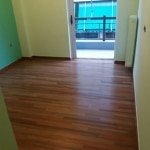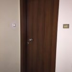 Οι παλαιές ντουλάπες του διαμερίσματος αντικαταστάθηκαν με νέες σε ένα όμορφο χρώμα ξύλου.