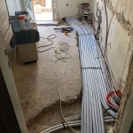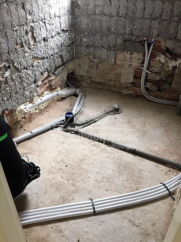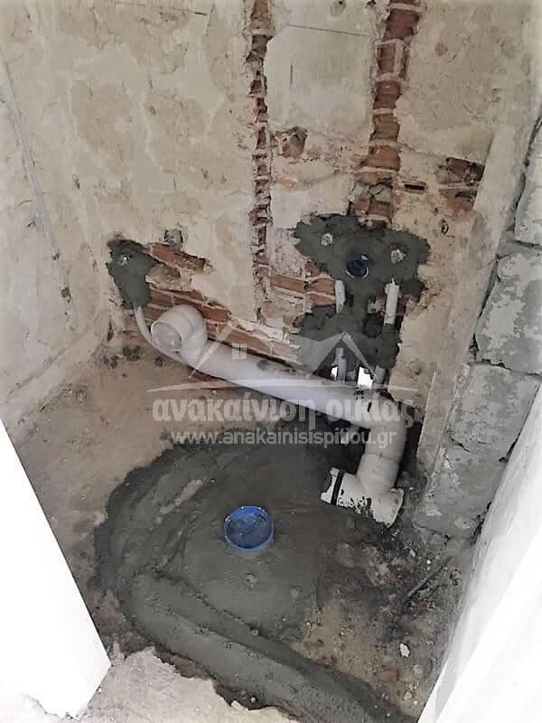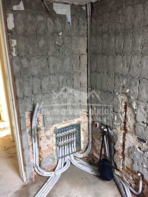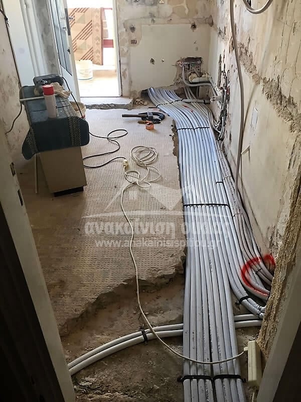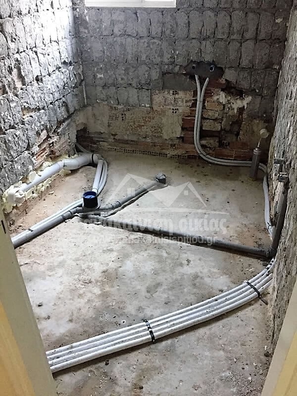 Αφού επισκεφτήκαμε το διαμέρισμα της οικογένειας στο Νέο Ηράκλειο αποφασίσαμε να προχωρήσουμε σε ανακαίνιση σπιτιού. Ξεκινήσαμε με τις αποξηλώσεις των πλακιδίων, της κουζίνας και των δύο μπάνιων. Δε θα μπορούσαμε να αφήσουμε τις ηλεκτρολογικές και υδραυλικές εγκαταστάσεις χωρίς να επέμβουμε. Όλες οι υδραυλικές σωληνώσεις και αποχετεύσεις αντικαταστάθηκαν με νέες της γνωστής εταιρείας Valsir.