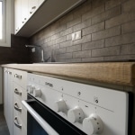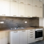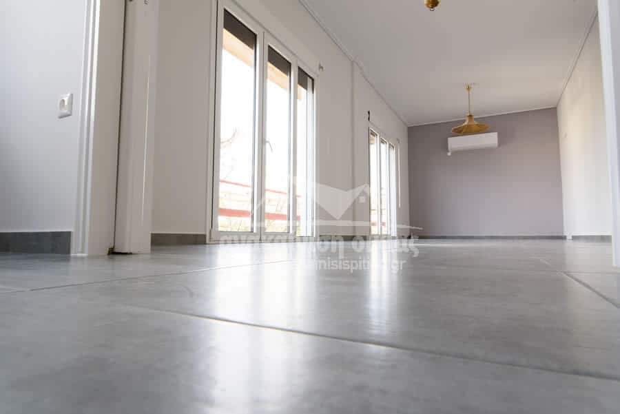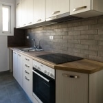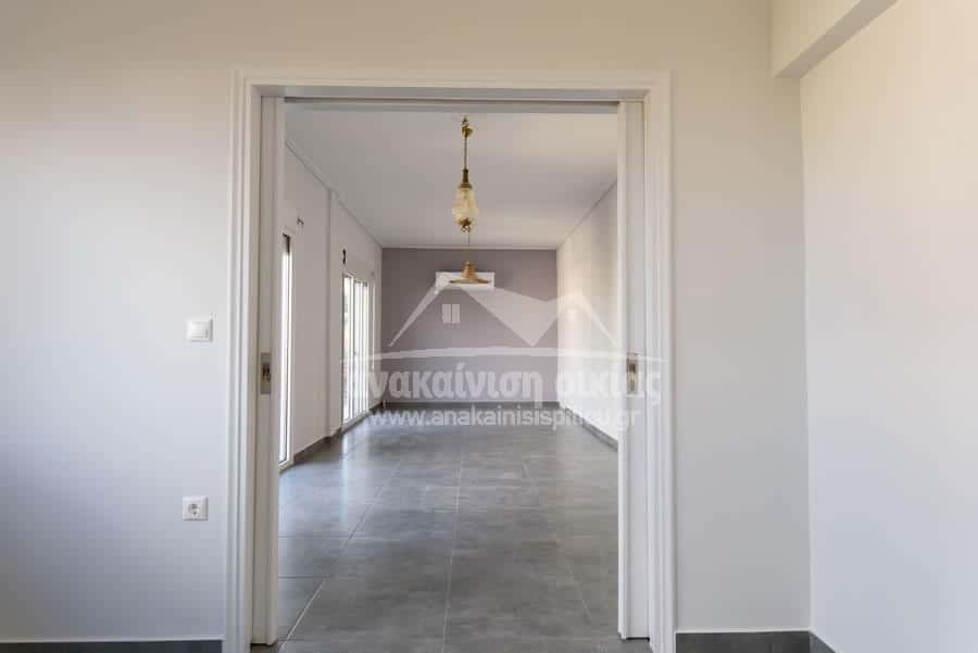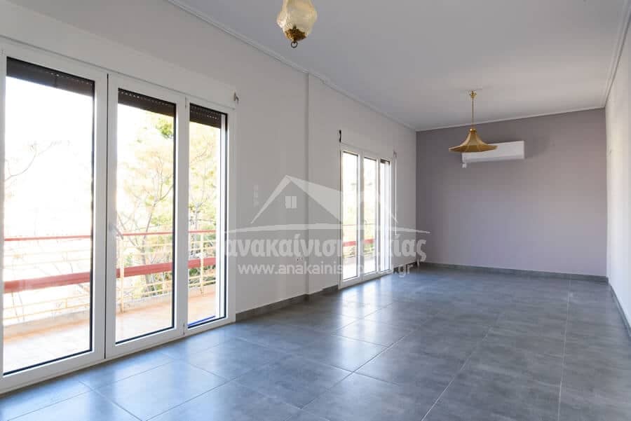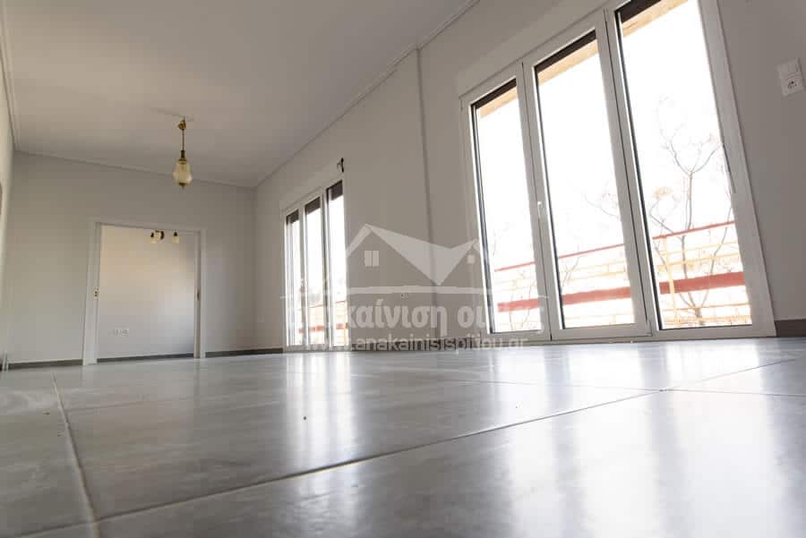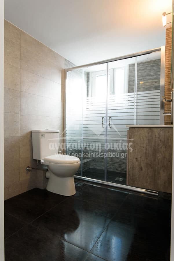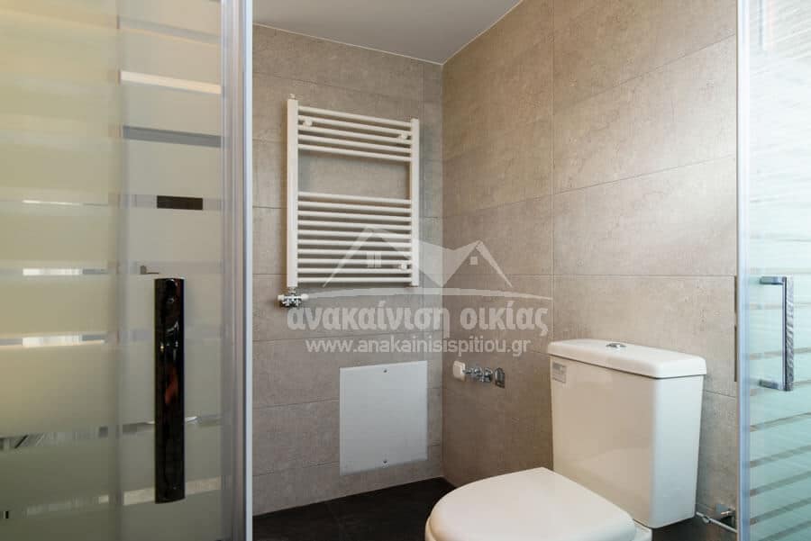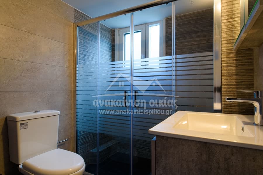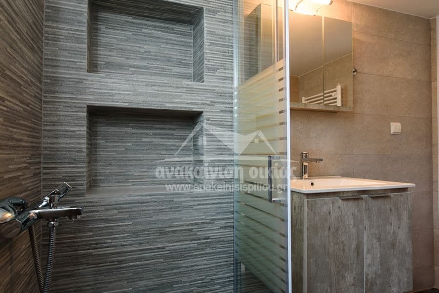 Η κουζίνα αντικαταστάθηκε με νέα σε γήινες αποχρώσεις και τοποθετήθηκαν ενεργειακά κουφώματα αλουμινίου της εταιρείας Alumil. Τα παλαιά πλακάκια αποξηλώθηκαν και τοποθετήθηκαν νέα σε μία όμορφη γκρι απόχρωση.