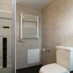 Στη συνέχεια τροποποιήθηκαν και αντικαταστάθηκαν και οι ηλεκτρολογικές εγκαταστάσεις του διαμερίσματος. Στο κομμάτι της θέρμανσης δημιουργήθηκε μονοσωληνιο σύστημα καλοριφέρ ενδοδαπέδια και αυτό θα το ελέγχει ένας αυτόνομος λέβητας φυσικού αερίου στο μπαλκόνι, ο οποίος θερμαίνει και τα νερά χρήσης του σπιτιού. Στη συνέχεια έγινε μία ριζική ανακαίνιση μπάνιου, όπου η μπανιέρα αντικαταστάθηκε με μία ευρύχωρη χτιστή ντουζιέρα που περικλείεται από μία καμπίνα από κρύσταλλο ασφαλείας.