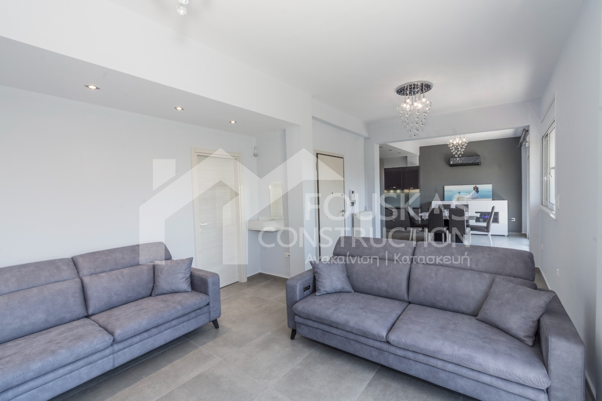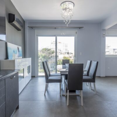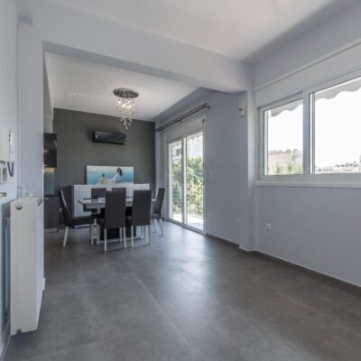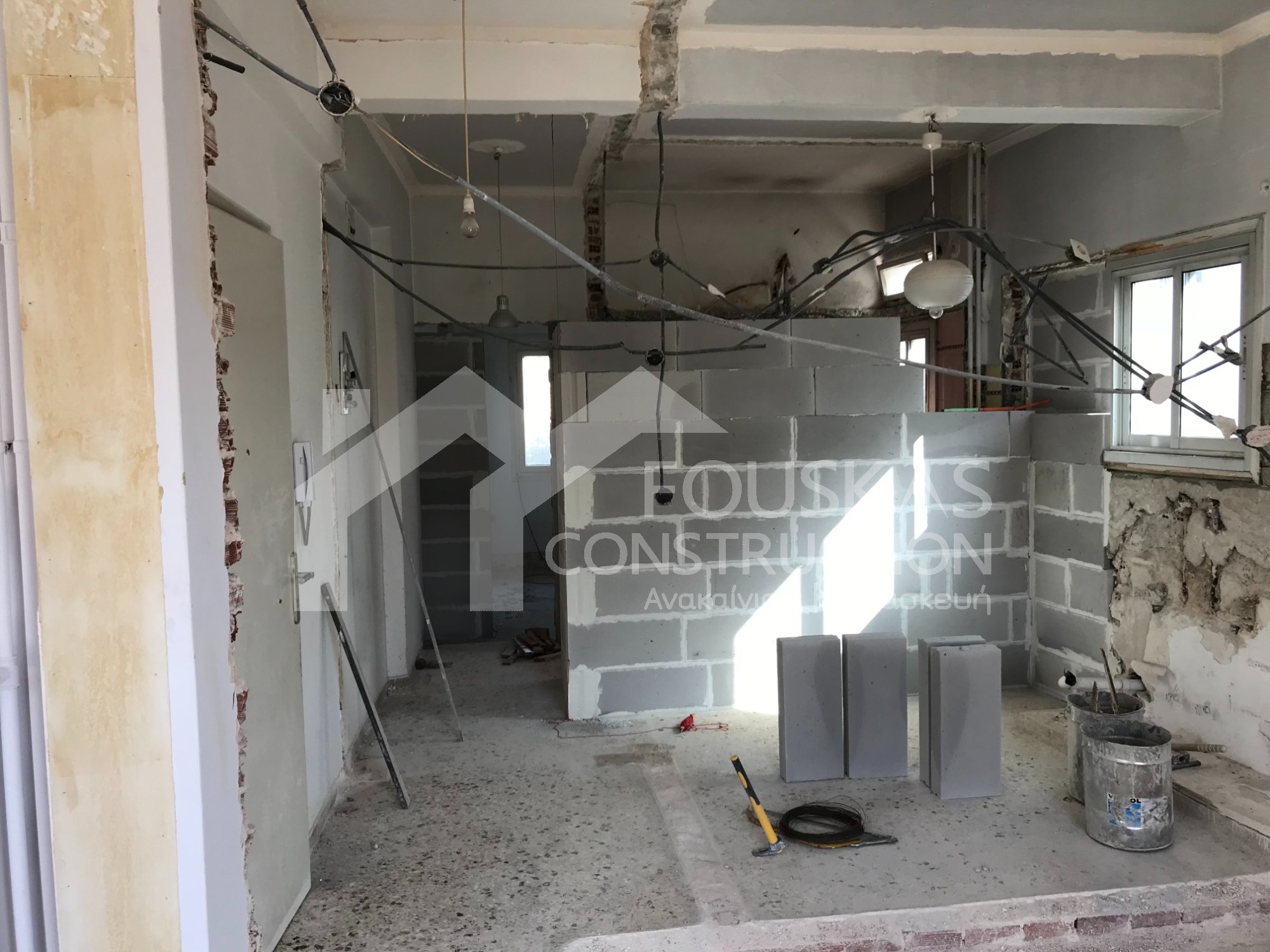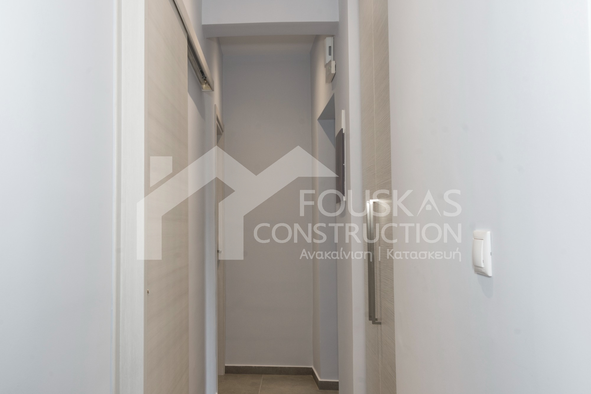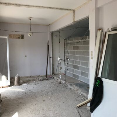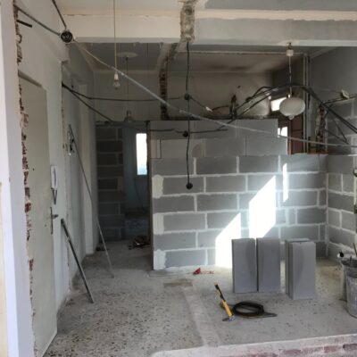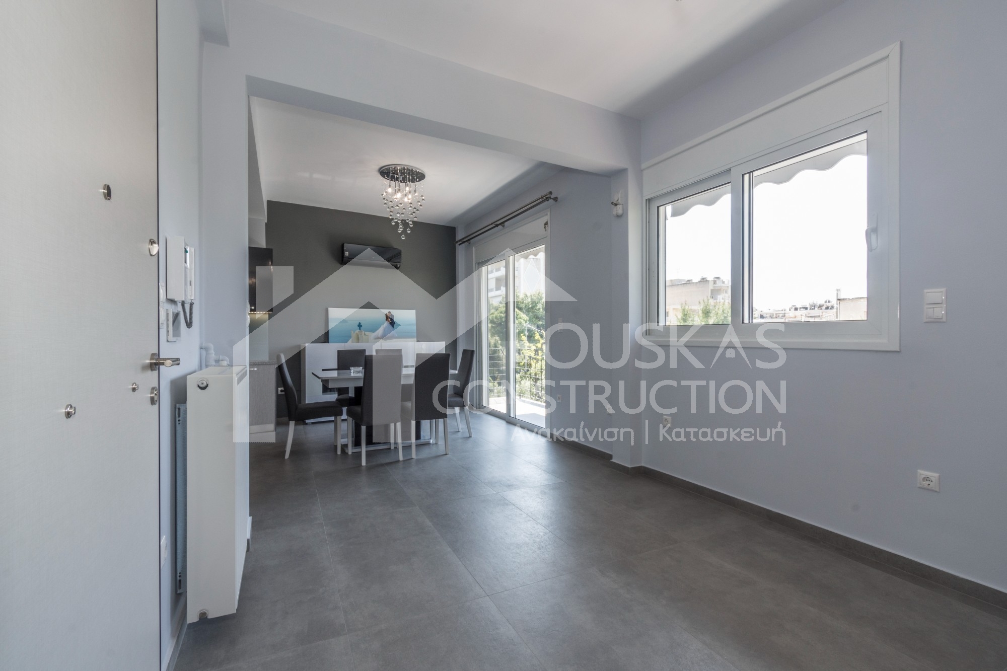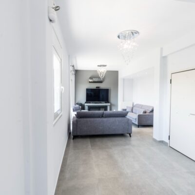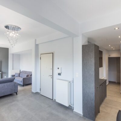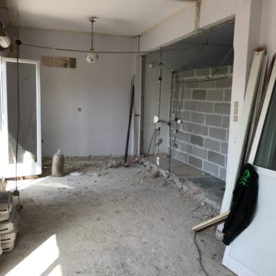Η εταιρεία μας ολοκλήρωσε μία δύσκολη και περίπλοκη ανακαίνιση κατοικίας στο Παλαιό Φάληρο. Ο όροφος είχε δύο διαμερίσματα αρκετά παλαιά και έπρεπε να δημιουργήσουμε ένα με αυξημένες απαιτήσεις. Αρχικά γκρεμίστηκαν αρκετοί τοίχοι και δημιουργήθηκαν νέοι, έτσι ώστε να σχηματιστούν οι χώροι που έπρεπε. Έγιναν πάρα πολλές αλλαγές στα εξωτερικά κουφώματα και γενικά σε όλο τον όροφο. Δημιουργήθηκαν νέες υδραυλικές και ηλεκτρολογικές εγκαταστάσεις σύμφωνα με τις απαιτήσεις του πελάτη. Αφού ξηλώθηκαν τα δάπεδα έπρεπε να γεμιστούς με νέα τσιμεντοκονία από περλίτη για να έχουμε ηχομονωτικές ιδιότητες αλλά και μειωμένο βάρος. Τα δάπεδα καλυφτήκαν με πλακάκια μεγάλης διάστασης από γρανίτη σε μία όμορφη γκρι γήινη απόχρωση.