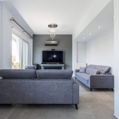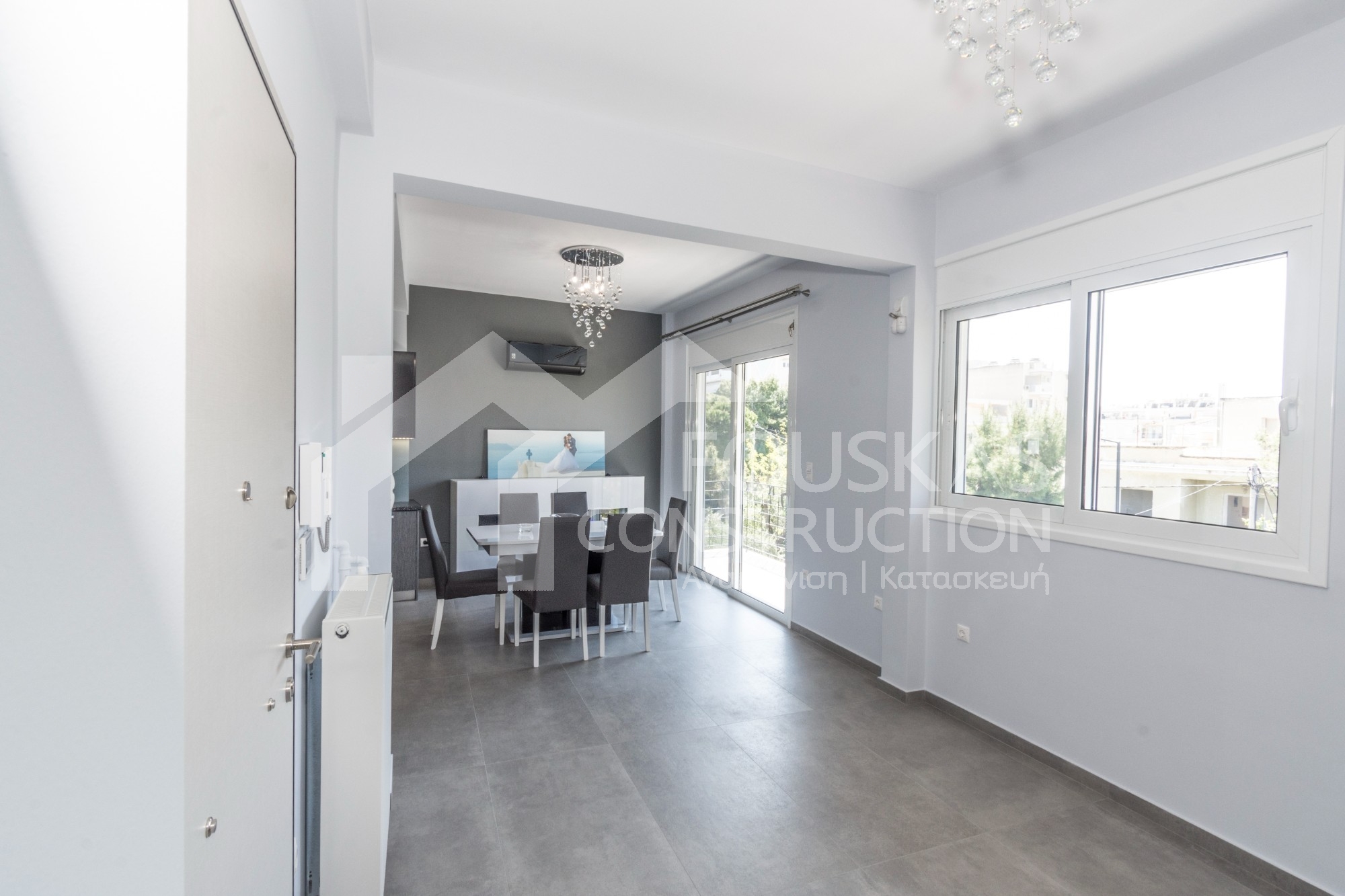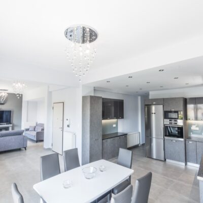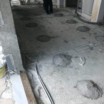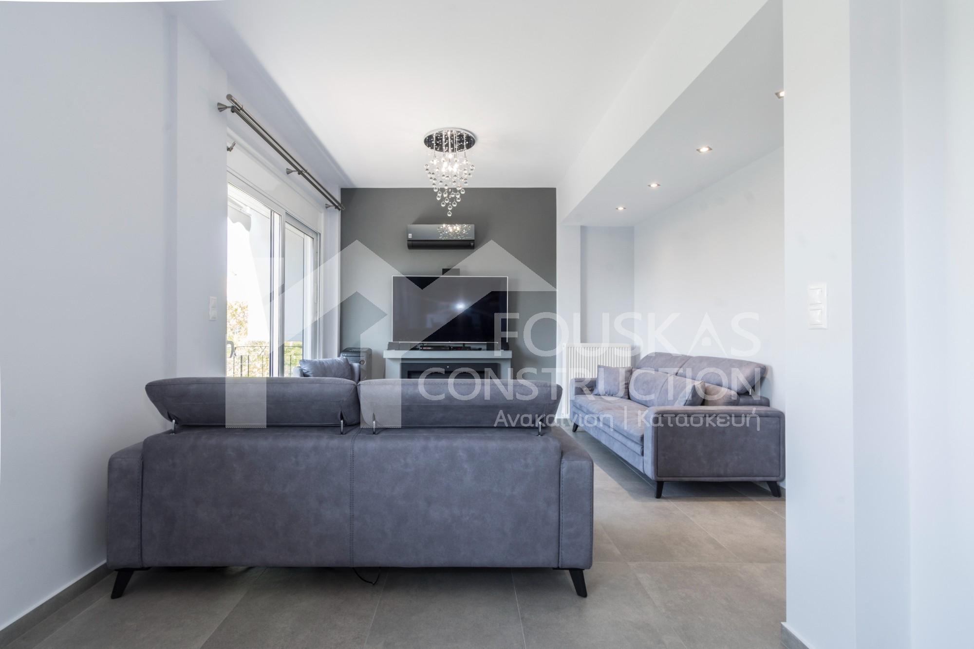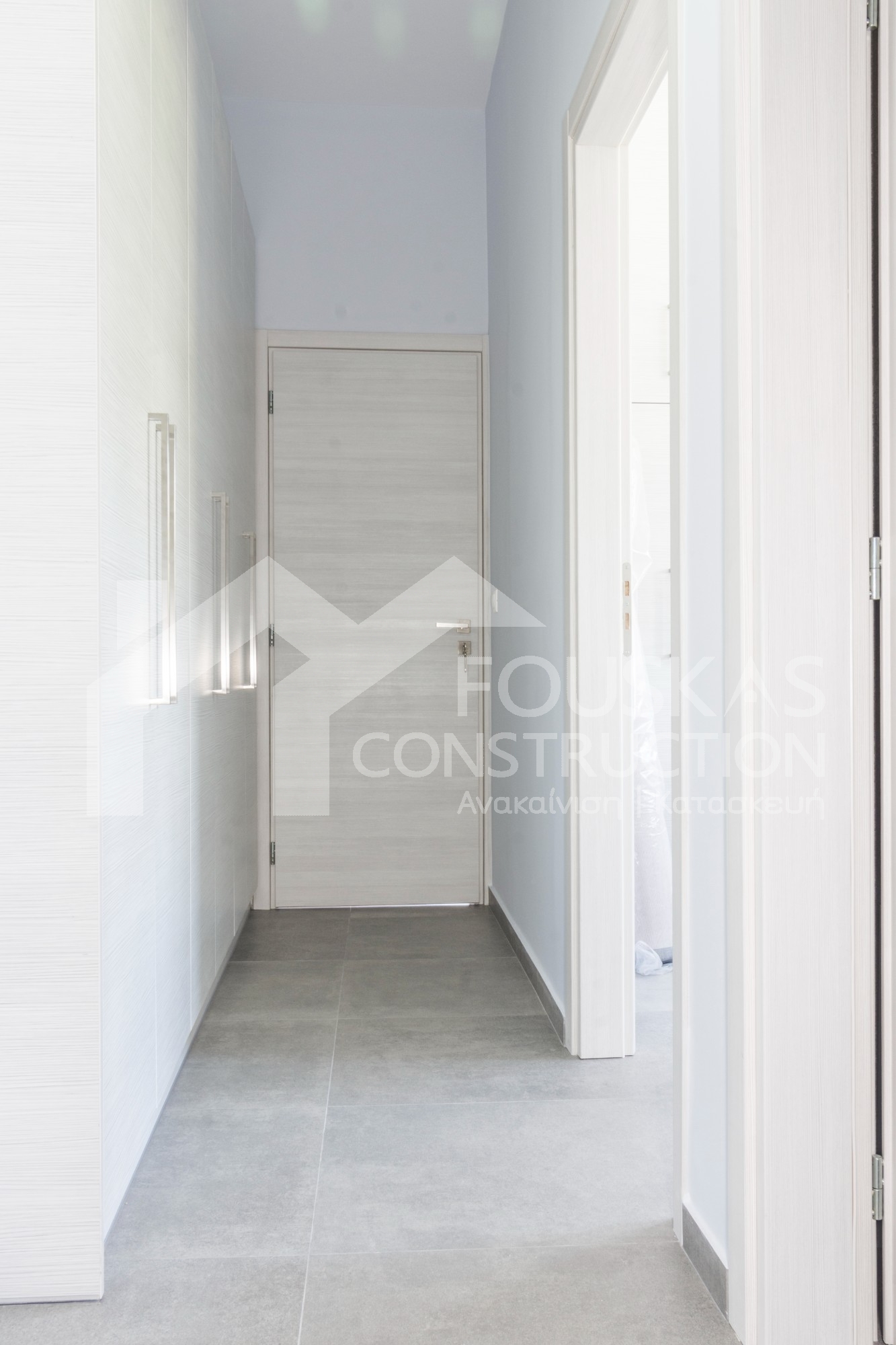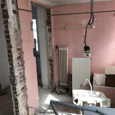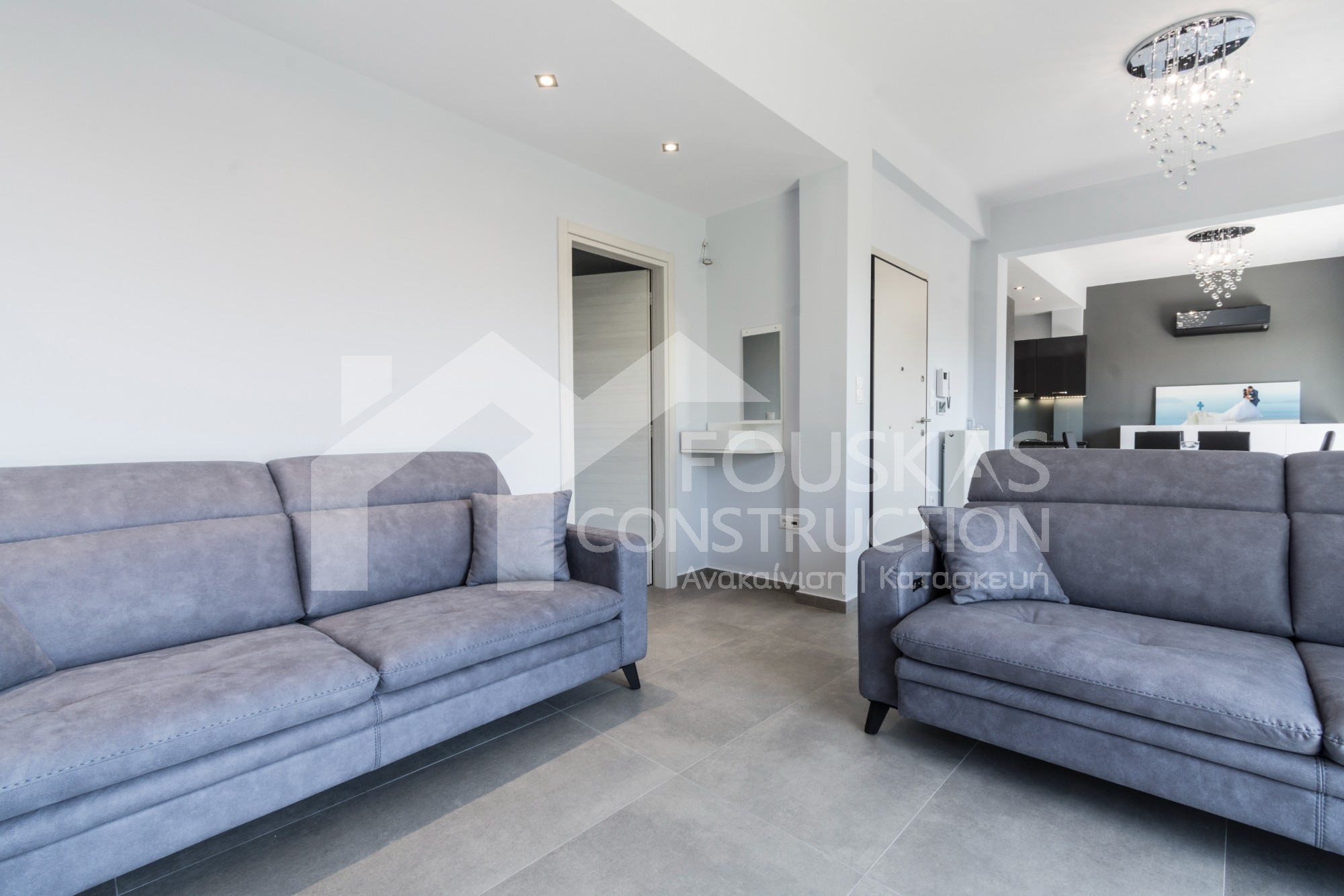 Η εταιρεία μας ολοκλήρωσε μία δύσκολη και περίπλοκη ανακαίνιση κατοικίας στο Παλαιό Φάληρο. Ο όροφος είχε δύο διαμερίσματα αρκετά παλαιά και έπρεπε να δημιουργήσουμε ένα με αυξημένες απαιτήσεις. Αρχικά γκρεμίστηκαν αρκετοί τοίχοι και δημιουργήθηκαν νέοι, έτσι ώστε να σχηματιστούν οι χώροι που έπρεπε. Έγιναν πάρα πολλές αλλαγές στα εξωτερικά κουφώματα και γενικά σε όλο τον όροφο. Δημιουργήθηκαν νέες υδραυλικές και ηλεκτρολογικές εγκαταστάσεις σύμφωνα με τις απαιτήσεις του πελάτη. Αφού ξηλώθηκαν τα δάπεδα έπρεπε να γεμιστούς με νέα τσιμεντοκονία από περλίτη για να έχουμε ηχομονωτικές ιδιότητες αλλά και μειωμένο βάρος. Τα δάπεδα καλυφτήκαν με πλακάκια μεγάλης διάστασης από γρανίτη σε μία όμορφη γκρι γήινη απόχρωση.