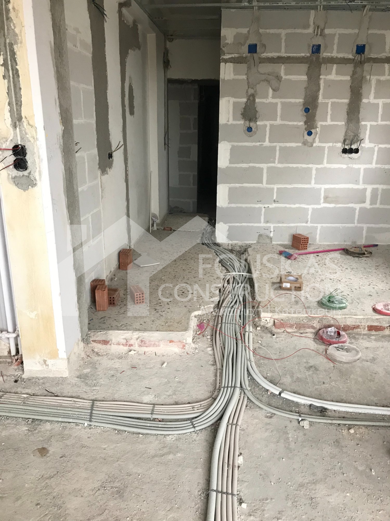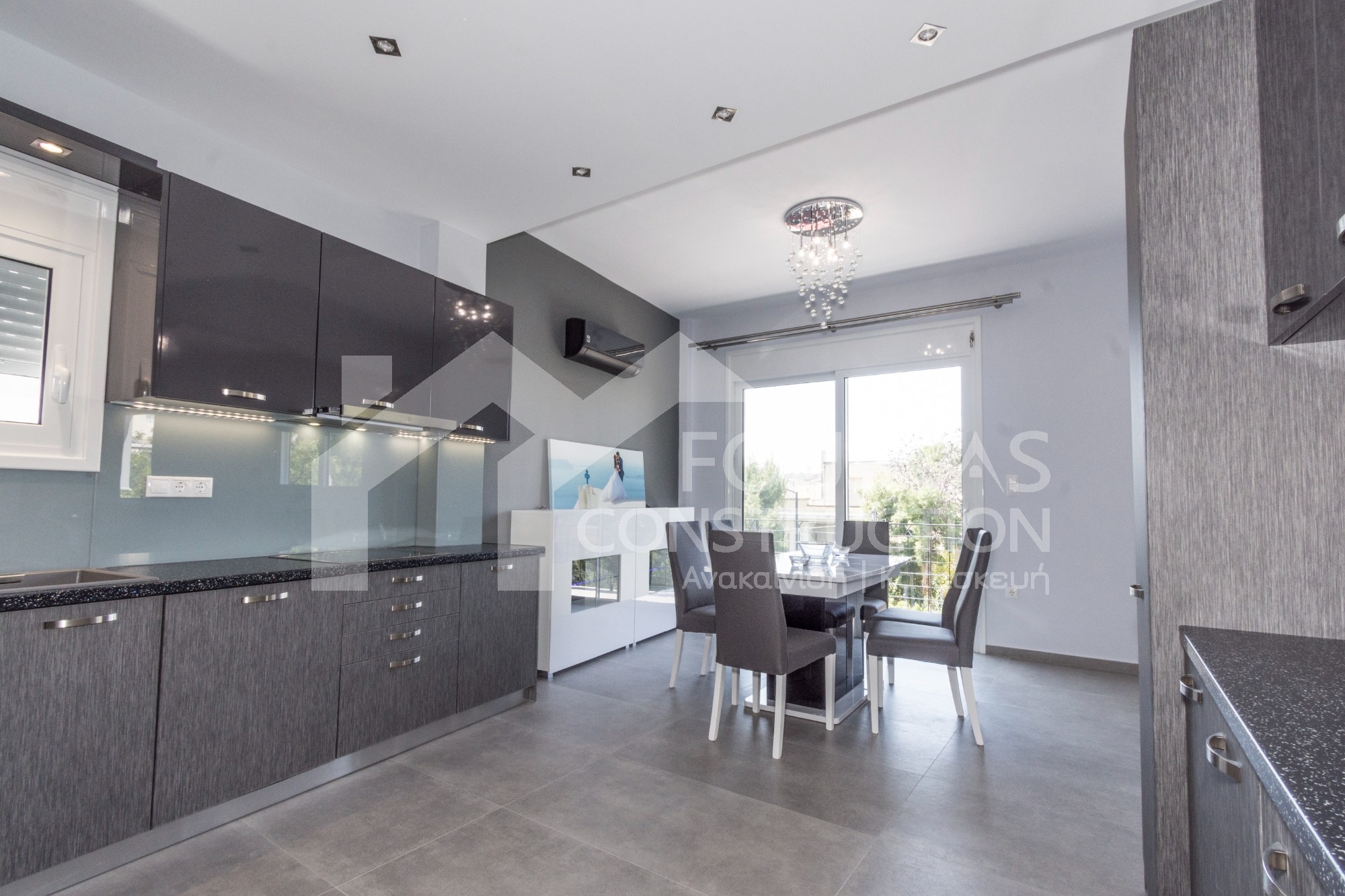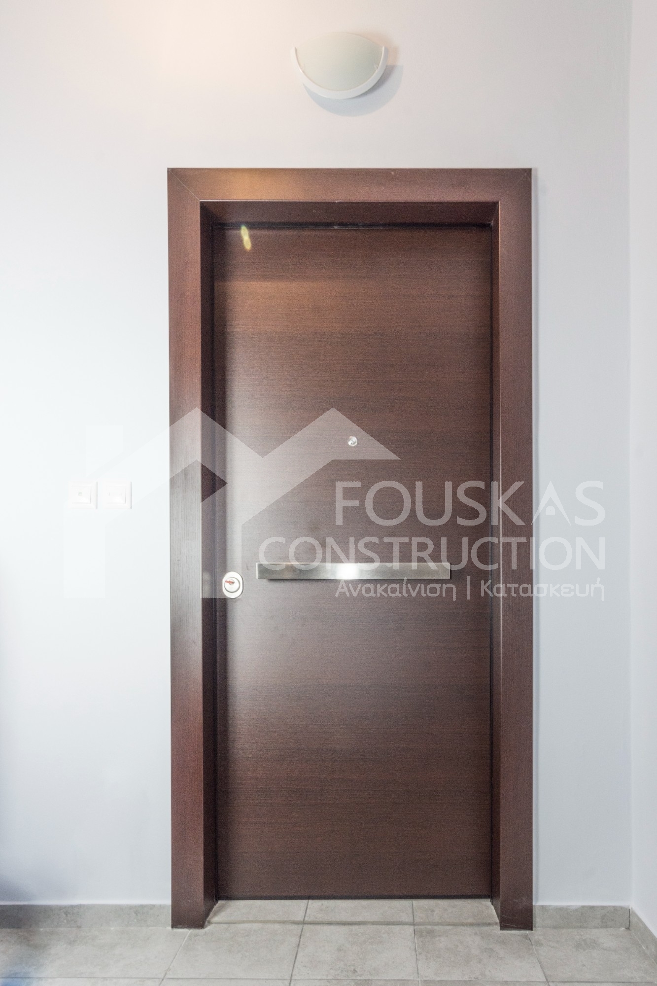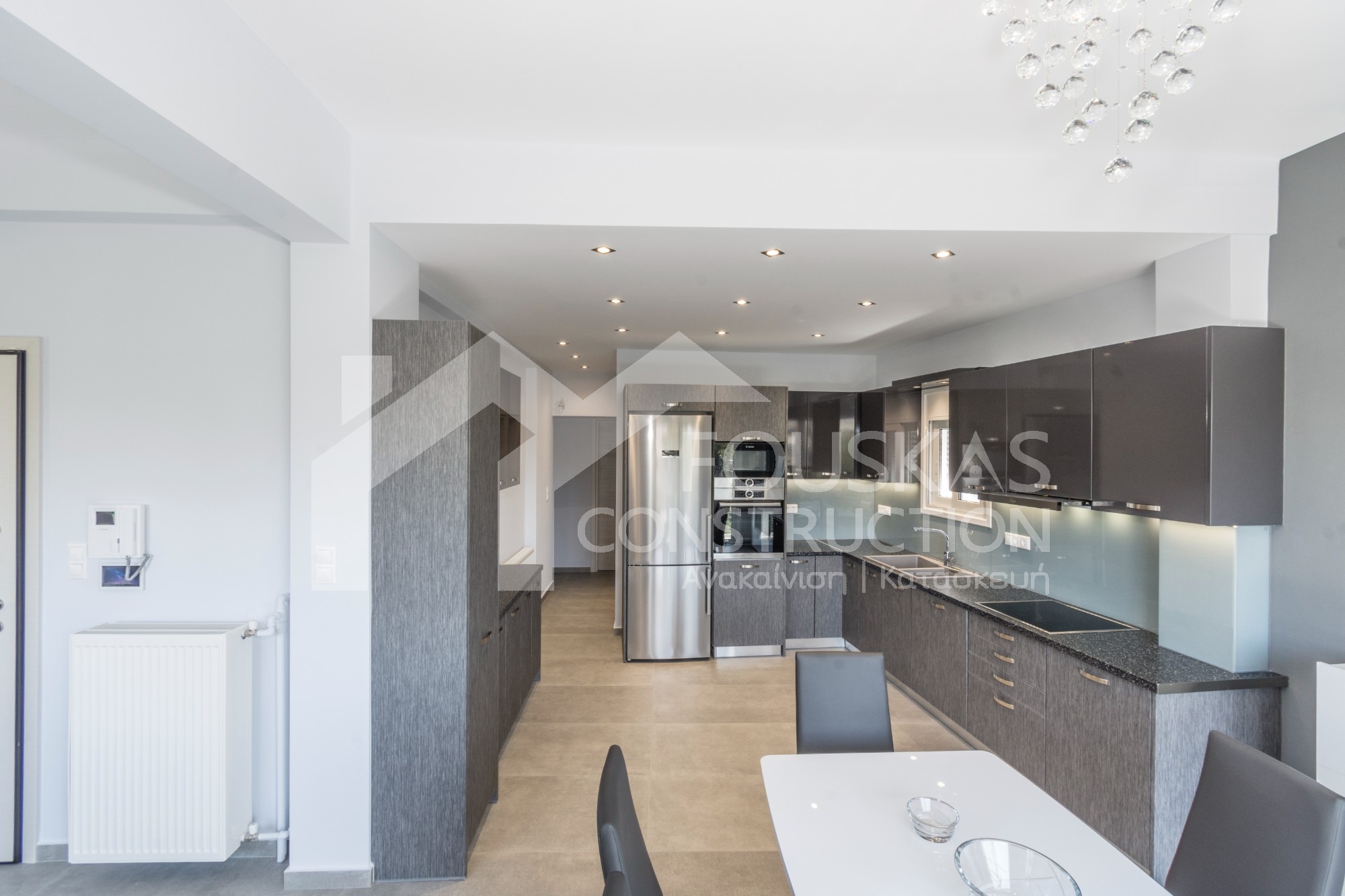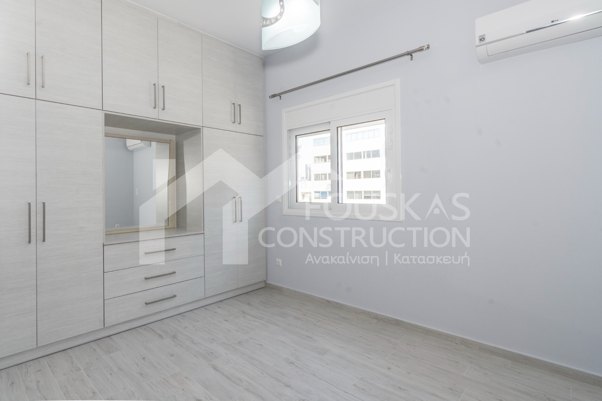 Η εταιρεία μας ολοκλήρωσε μία δύσκολη και περίπλοκη ανακαίνιση κατοικίας στο Παλαιό Φάληρο. Ο όροφος είχε δύο διαμερίσματα αρκετά παλαιά και έπρεπε να δημιουργήσουμε ένα με αυξημένες απαιτήσεις. Αρχικά γκρεμίστηκαν αρκετοί τοίχοι και δημιουργήθηκαν νέοι, έτσι ώστε να σχηματιστούν οι χώροι που έπρεπε. Έγιναν πάρα πολλές αλλαγές στα εξωτερικά κουφώματα και γενικά σε όλο τον όροφο. Δημιουργήθηκαν νέες υδραυλικές και ηλεκτρολογικές εγκαταστάσεις σύμφωνα με τις απαιτήσεις του πελάτη. Αφού ξηλώθηκαν τα δάπεδα έπρεπε να γεμιστούς με νέα τσιμεντοκονία από περλίτη για να έχουμε ηχομονωτικές ιδιότητες αλλά και μειωμένο βάρος. Τα δάπεδα καλυφτήκαν με πλακάκια μεγάλης διάστασης από γρανίτη σε μία όμορφη γκρι γήινη απόχρωση.