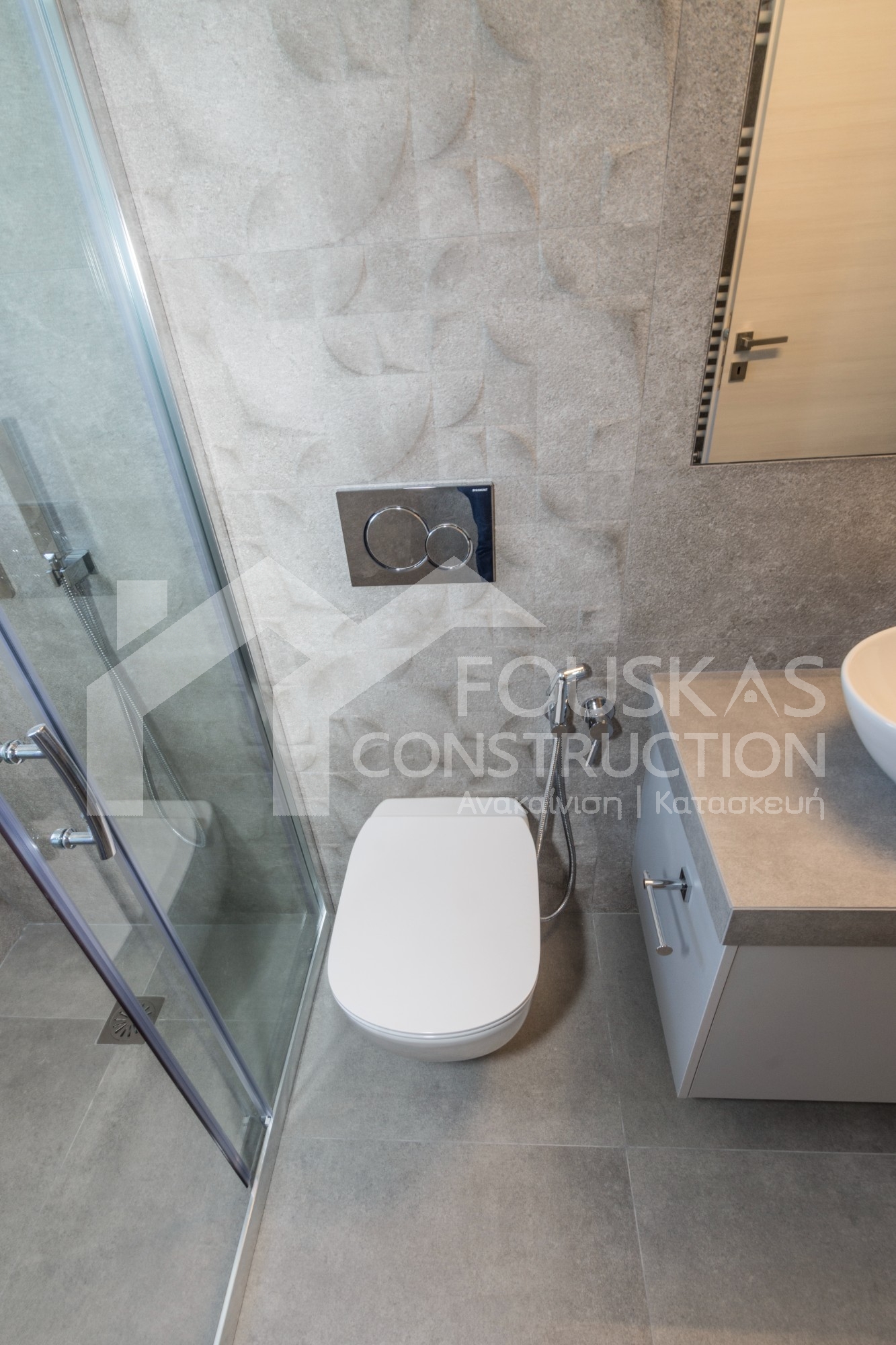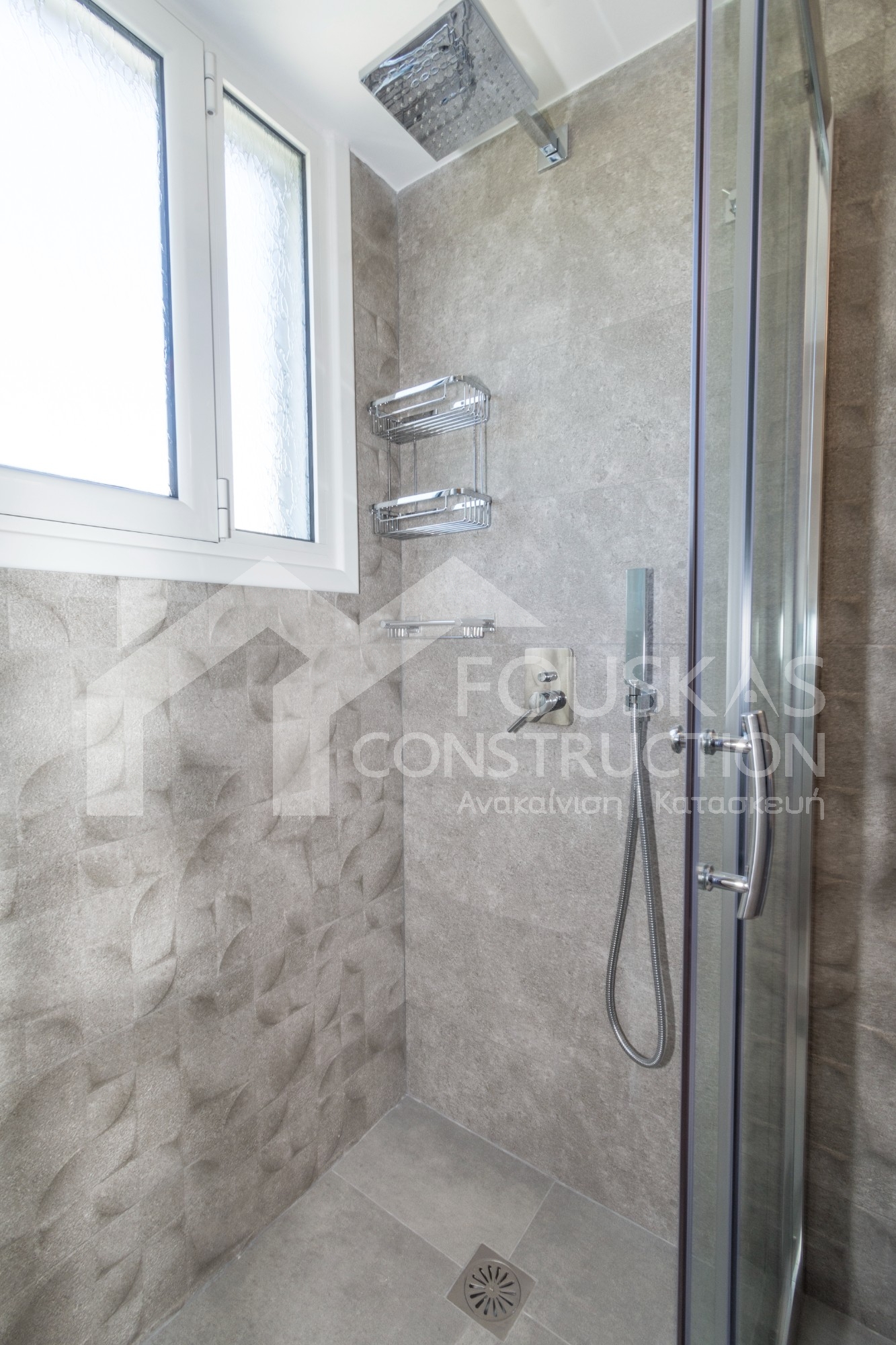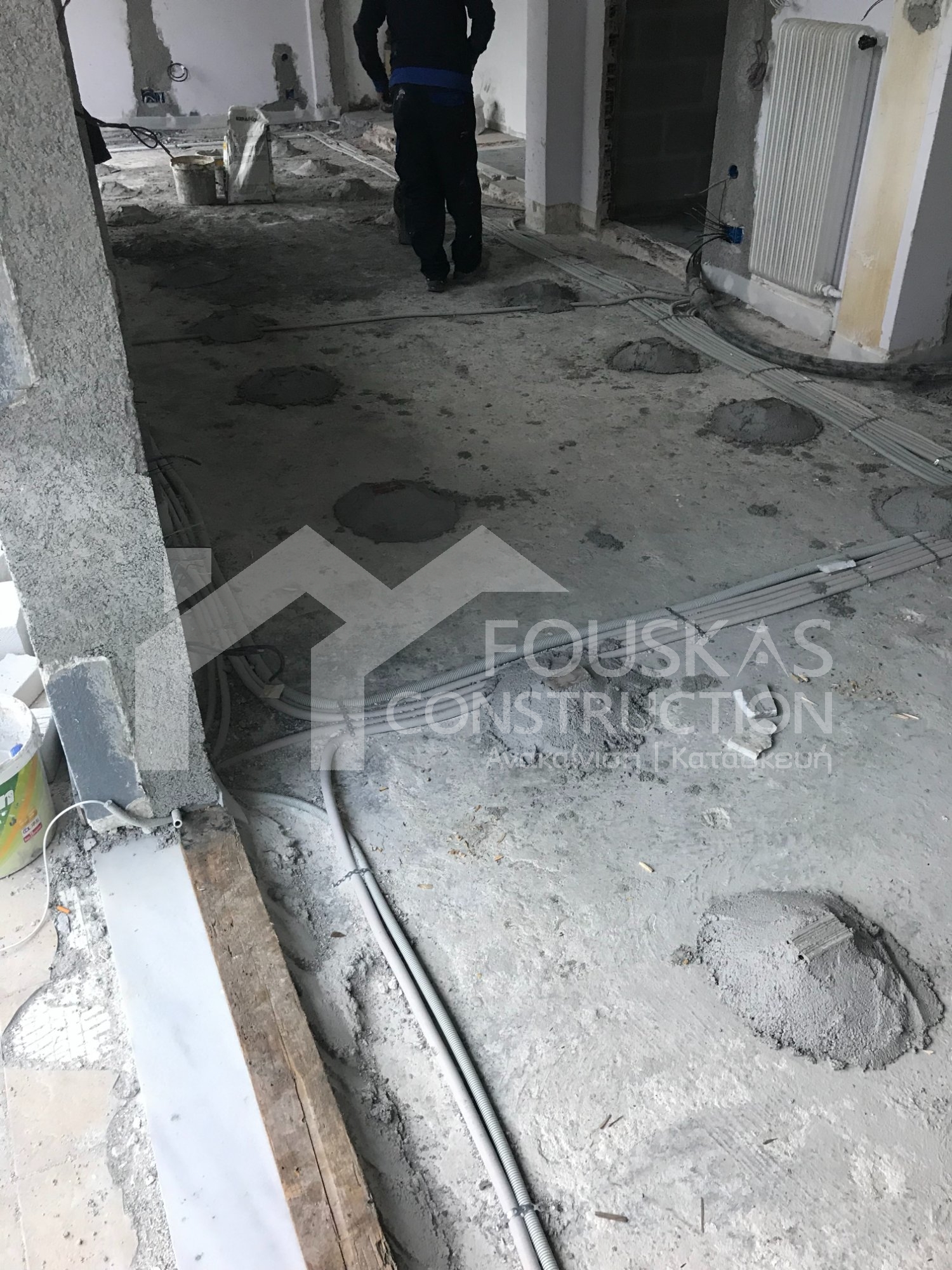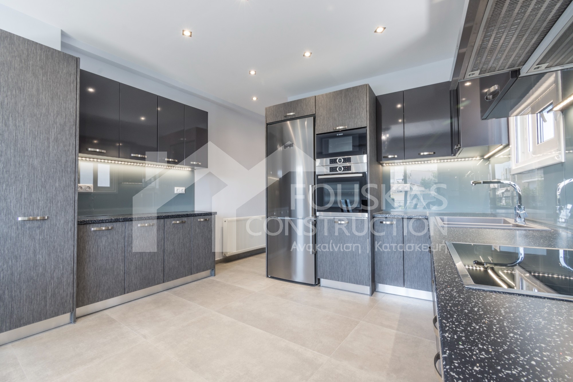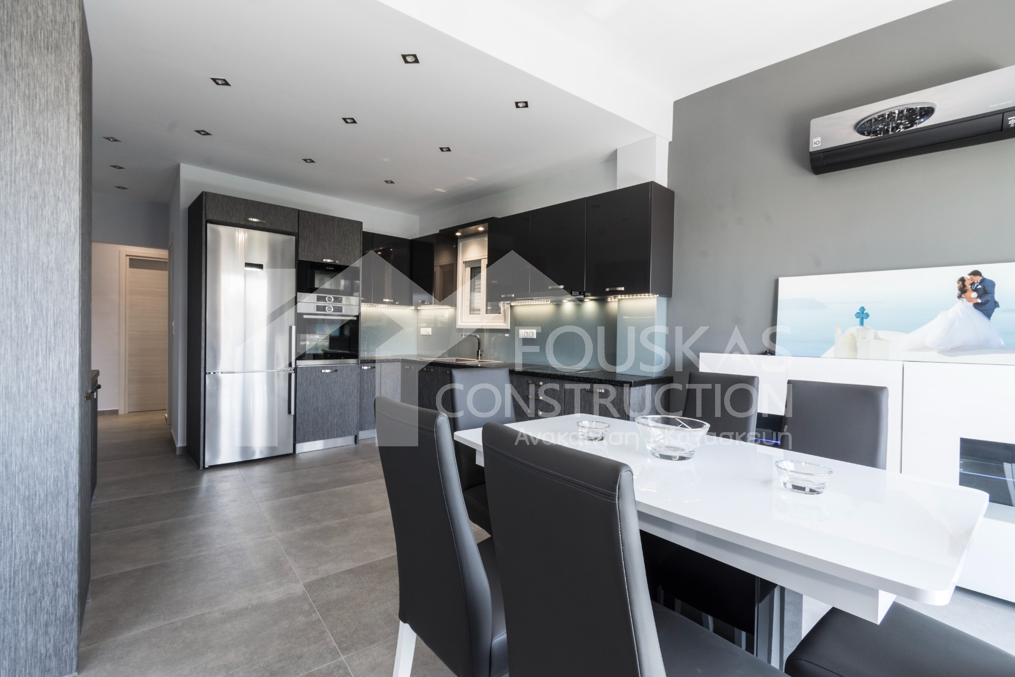 Η εταιρεία μας ολοκλήρωσε μία δύσκολη και περίπλοκη ανακαίνιση κατοικίας στο Παλαιό Φάληρο. Ο όροφος είχε δύο διαμερίσματα αρκετά παλαιά και έπρεπε να δημιουργήσουμε ένα με αυξημένες απαιτήσεις. Αρχικά γκρεμίστηκαν αρκετοί τοίχοι και δημιουργήθηκαν νέοι, έτσι ώστε να σχηματιστούν οι χώροι που έπρεπε. Έγιναν πάρα πολλές αλλαγές στα εξωτερικά κουφώματα και γενικά σε όλο τον όροφο. Δημιουργήθηκαν νέες υδραυλικές και ηλεκτρολογικές εγκαταστάσεις σύμφωνα με τις απαιτήσεις του πελάτη. Αφού ξηλώθηκαν τα δάπεδα έπρεπε να γεμιστούς με νέα τσιμεντοκονία από περλίτη για να έχουμε ηχομονωτικές ιδιότητες αλλά και μειωμένο βάρος. Τα δάπεδα καλυφτήκαν με πλακάκια μεγάλης διάστασης από γρανίτη σε μία όμορφη γκρι γήινη απόχρωση.