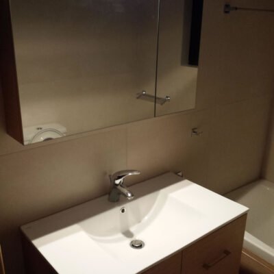 Κατά την επίσκεψη μας στο διαμέρισμα του περιστερίου και μετά την αρχική εκδήλωση ενδιαφέροντος του ιδιοκτήτη του διαμερίσματος να προχωρήσει σε μερική ανακαίνιση οικίας, διαπιστώσαμε ότι το μπάνιο ήταν αρκετά παλαιό και έχρηζε ριζικής ανακαίνισης. Γι αυτό προχωρήσαμε στις ακόλουθες εργασίες με κύριο στόχο την λειτουργικότητα και το σύγχρονο design. Οι αλλαγές που έγιναν είναι οι εξής :