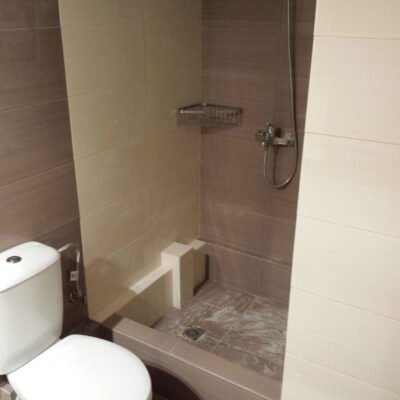 - Αντικατάσταση της παλαιάς μπανιέρας με μια χτιστή ντουζιέρα σε διαφορετική θέση