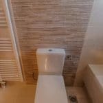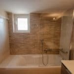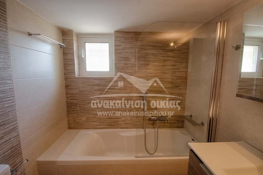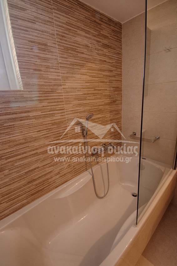 Η μπανιέρα αντικαταστάθηκε με μία χτιστή ντουζιέρα που περικλέιεται από ένα μονόπτυχο τζάμι. Σε κάποια πατώματα τοποθετήθηκε βινυλικό δάπεδο, σε άλλα γυαλίστηκαν τα μάρμαρα και στο άλλο διαμέρισμα τοποθετήθηκε ξύλινο δάπεδο. Οι εσωτερικές πόρτες αντικαταστάθηκαν με νέες πόρτες laminate σε όμορφες αποχρώσεις, ενώ άλλαξαν και οι εξωτερικές πόρτες των διαμερισμάτων.