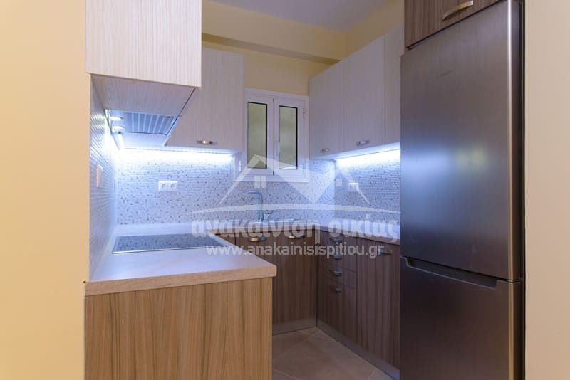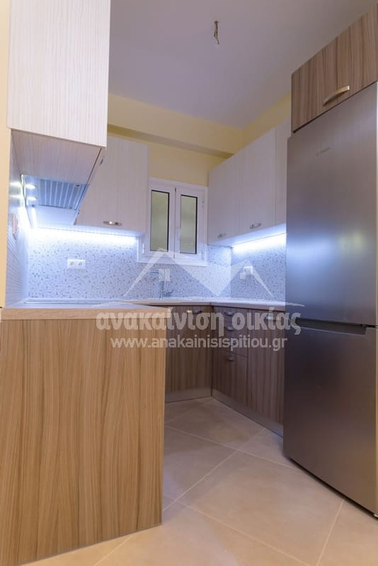 Η ανακαίνιση ολοκληρώθηκε με το χρωματισμό του διαμερίσματος σε γήινες αποχρώσεις.