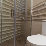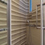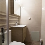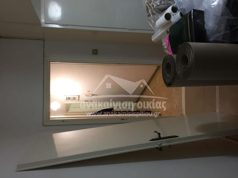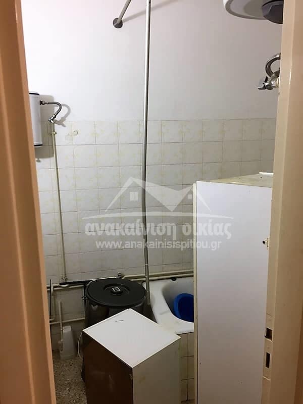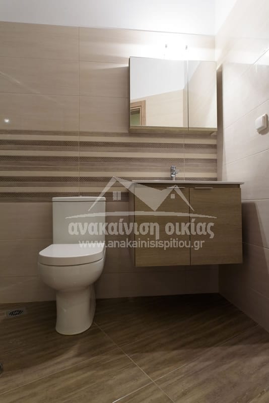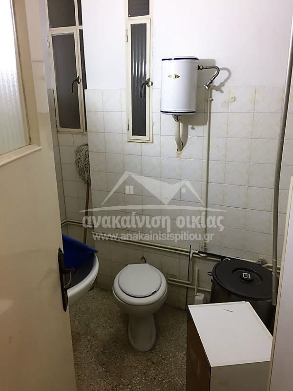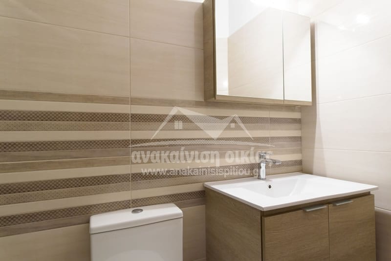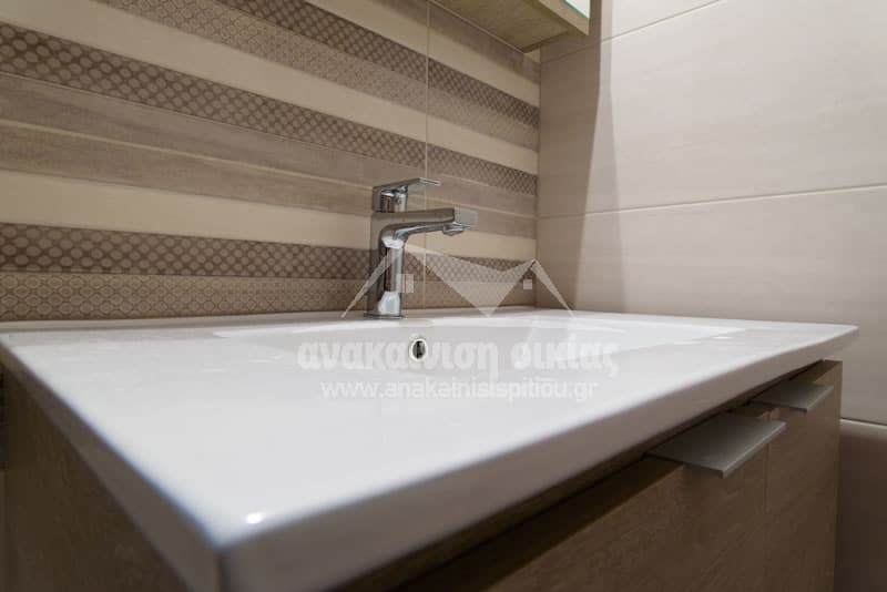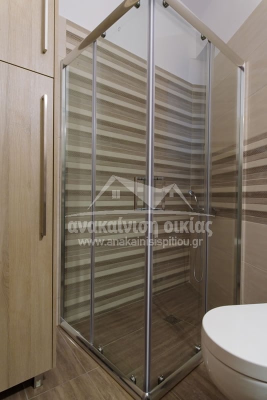 Υπήρχε δυσκολία στην υλοποίησή του επειδή ήταν παράγωνο και έπρεπε να γίνει όσο πιο λειτουργικό γίνεται. Τελικά όπως θα δείτε το αποτέλεσμα μας δικαίωσε και έγινε μία όμορφη ανακαίνιση μπάνιου με μία χτιστή ντουζιέρα ντυμένη με πλακάκια. Τα παλαιά εξωτερικά κουφώματα αντικαταστάθηκαν με νέα κουφώματα αλουμινίου σε λευκή απόχρωση.